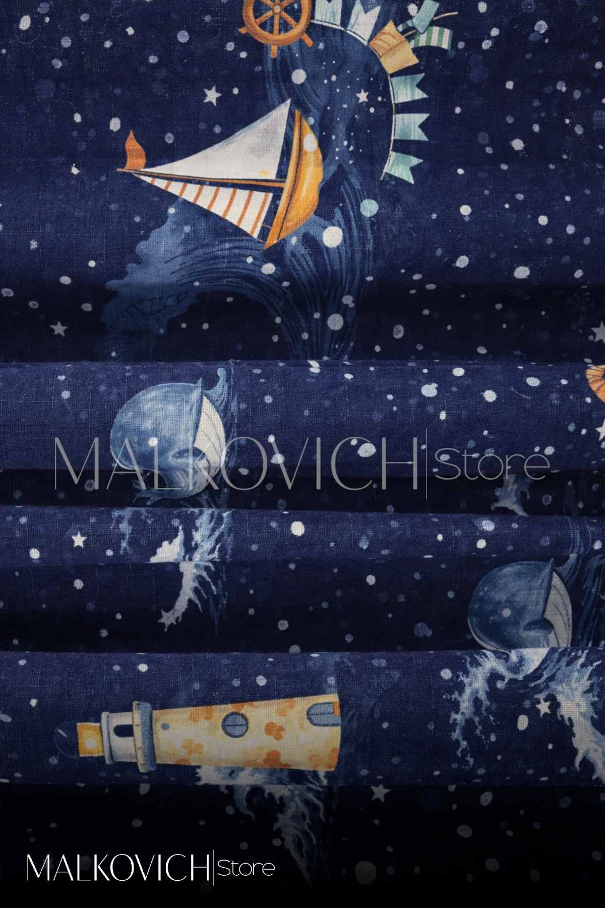 Desen: Deniz temalı (yelkenli, deniz feneri, deniz figürleri)