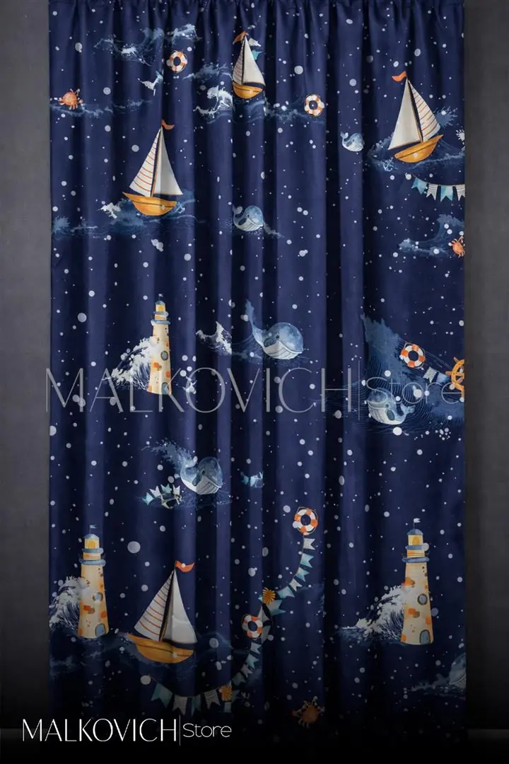 Erkek çocuk odaları için özel olarak tasarlanan ince fon perde, deniz temalı desenleriyle odalara eğlenceli ve hayal gücünü destekleyen bir atmosfer kazandırır. Yelkenli tekneler, deniz fenerleri ve sevimli deniz figürleriyle çocuklara özel sıcak ve neşeli bir dekorasyon sunar.