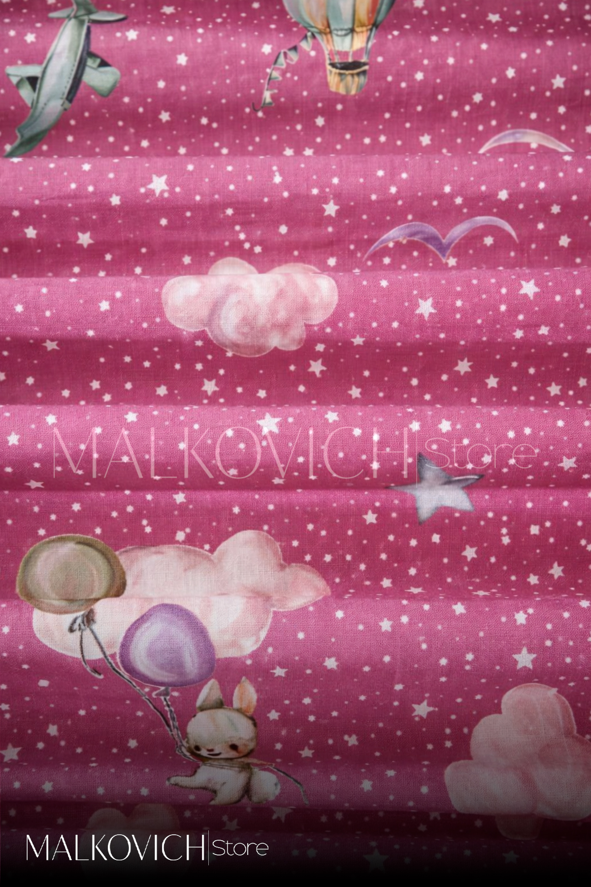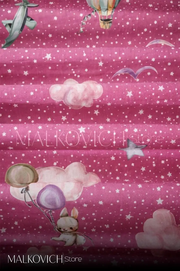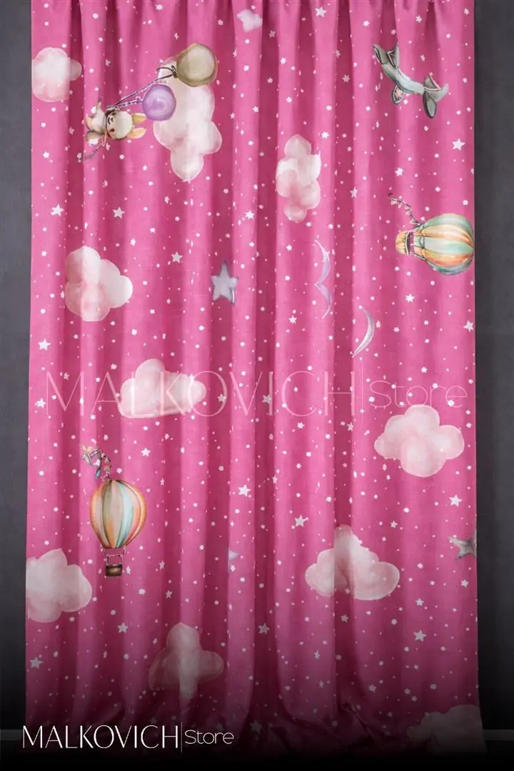 Kız çocuk odaları için özel olarak tasarlanan ince fon perde, bulut, yıldız ve balon desenleriyle odaya masalsı ve neşeli bir atmosfer kazandırır. Yumuşak pembe tonu sayesinde sıcak ve huzurlu bir ortam oluşturur.