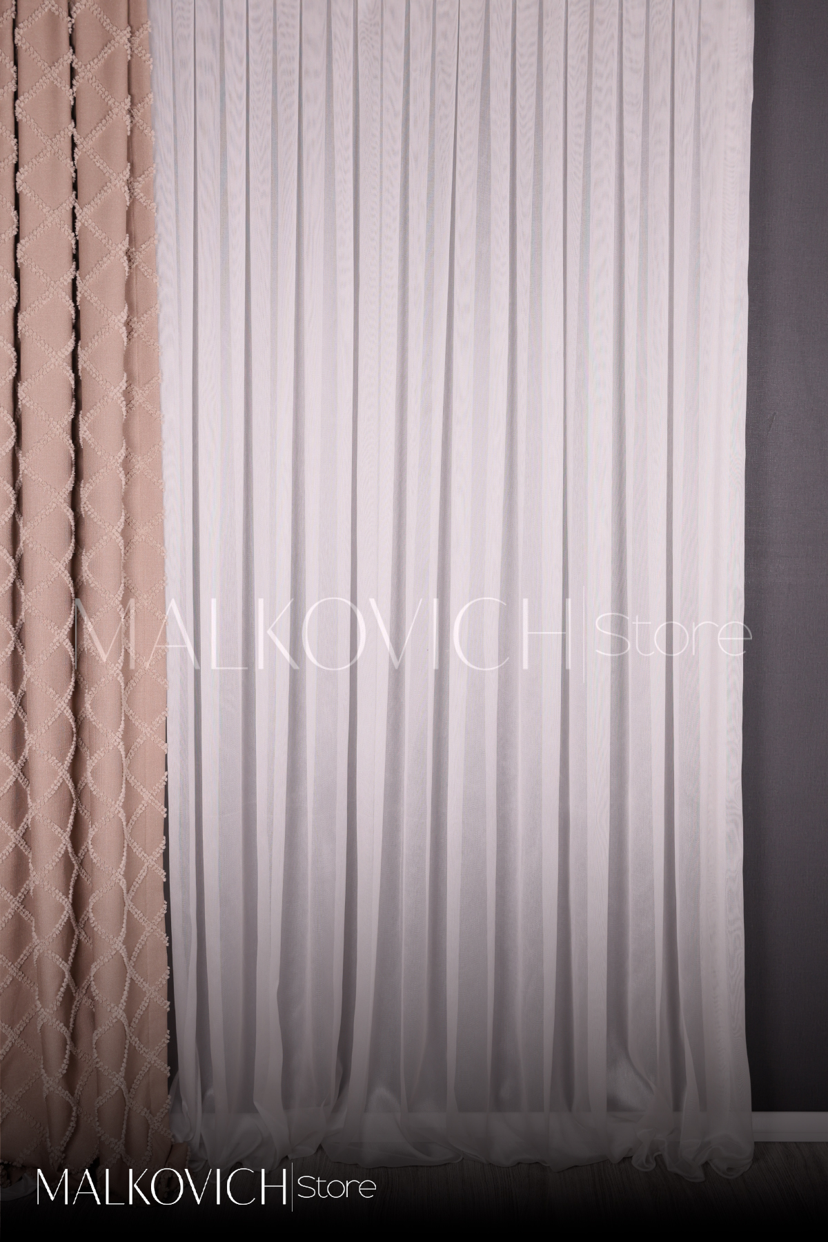 Ağır yapısı sayesinde düzgün ve pürüzsüz bir döküm sunar, pileli kullanımda formunu uzun süre korur. İnce tüllere kıyasla çok daha tok bir duruşa sahiptir ve cam önünde dalgalanma yapmaz. Işığı yumuşak şekilde süzerek iç mekânda aydınlık ama kontrollü bir görünüm oluşturur.